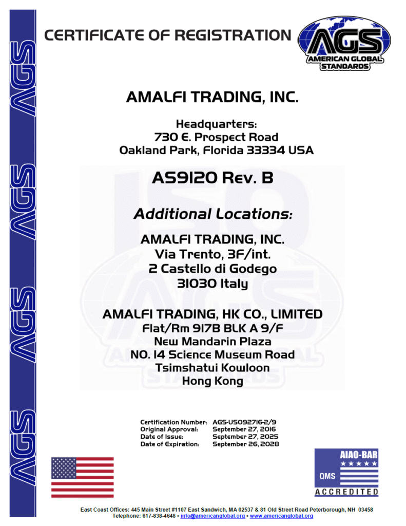 Grazie alla collaborazione con l’azienda LEAN ISO Experts riusciamo a garantire ai nostri clienti un servizio all’altezza del prodotto di qualità che vendiamo, sempre rispettando le normative ed i requisiti internazionali.